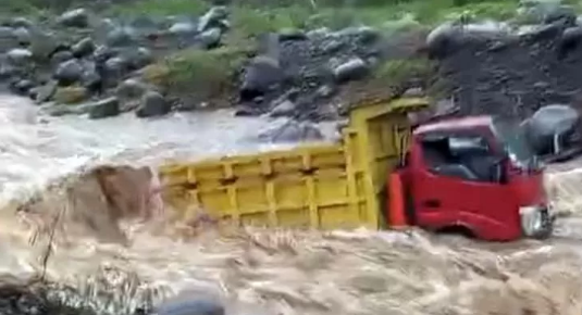 Nyaris Celaka! Truk Terjebak dan Terbawa Arus Deras di Sungai Probolinggo, Sopir Berhasil Selamatkan Diri